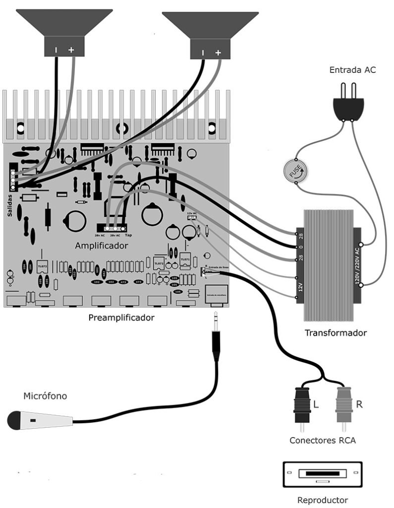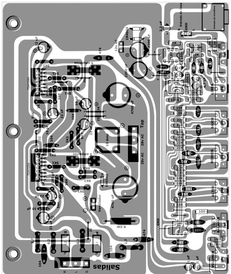 Nesta nova geração de amplificadores de som, foi projetada uma placa de circuito impresso (PCB), unindo um amplificador estéreo com dois TDA7294 ao microfone e um pré-amplificador de linha com controle de tom de três bandas, projetado por Tupolev, da forosdeelectronica.com. O resultado foi um sistema de som com excelente desempenho e grande utilidade para jukeboxes de vídeo com karaokê.