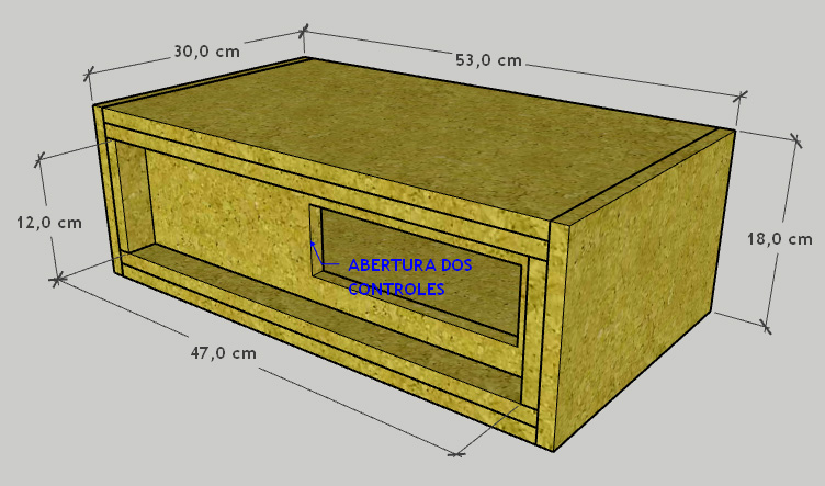 IMAGENS DAS PARTES DO GABINETE PARA ACOMODAR ESTE AMPLIFICADOR COM AS COTAS PARA CORTE.