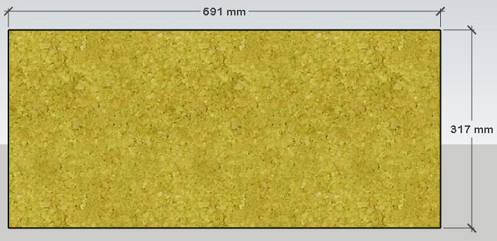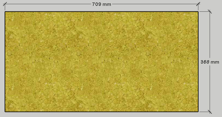 O painel superior tem as mesmas dimensões do painel da base da caixa, 709 mm x 368 mm.
